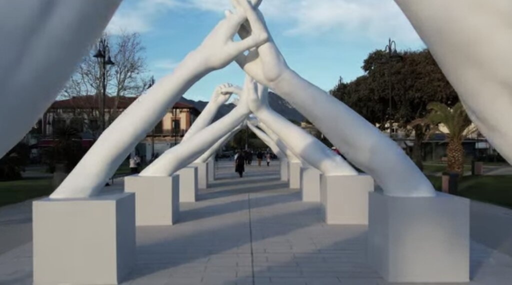 MARINA DI PIETRASANTA – Building Bridges, le mani di Lorenzo Quinn a Marina di Pietrasanta.