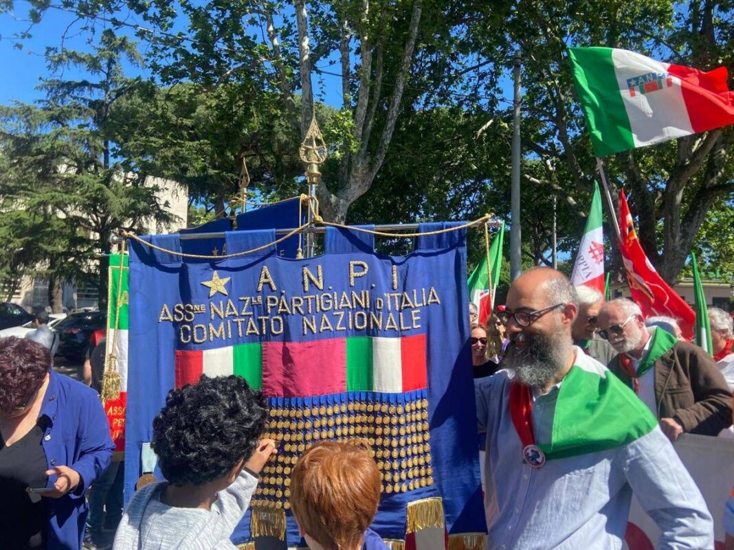 Momenti di tensione nel corso della manifestazione promossa dall’Anpi in Piazza di Porta San Paolo a Roma, a cui aderiscono sindacati e movimento studenteschi. Un gruppo di circa 10 manifestanti dei Radicali italiani con bandiere dell’Ucraina hanno raggiunto la Piramide Cestia. Sono intervenute immediatamente le forze dell’ordine. La situazione è tornata alla normalità con l’allontanamento del gruppo di manifestanti. Fra i manifestanti si trova anche il segretario della Cgil Maurizio Landini. Sventolano tante bandiere rosse e dell’Anpi, ma anche bandiere della pace, di Emergency, Palestina, Iran e Hezbollah. Sulle note di Bella ciao e i cori “Ora e sempre Resistenza” in migliaia procedono per le vie della Capitale in direzione di Parco Schuster, dove terminerà il corteo. In testa sfilano i partigiani.