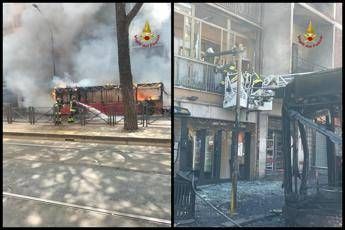 Roma, bus in fiamme sulla Prenestina: vetri rotti e facciata annerita