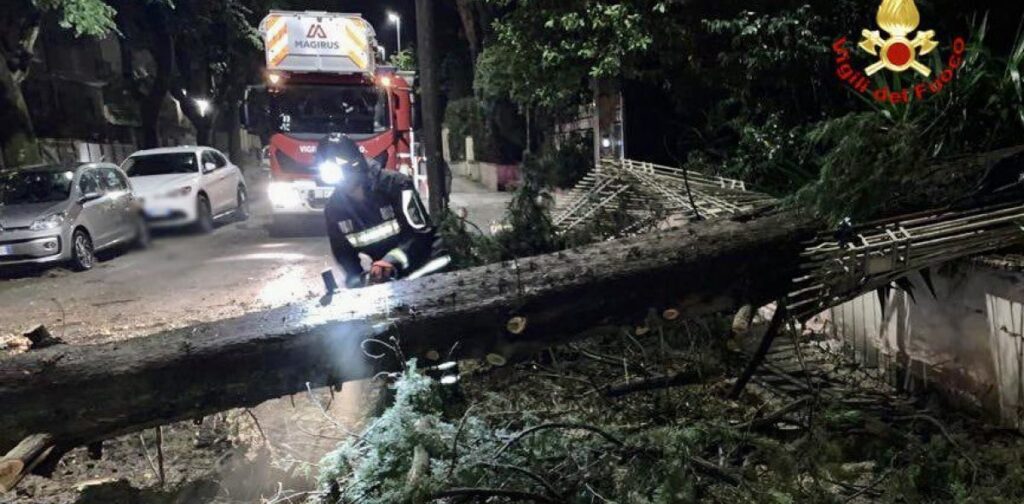 A Siena circa 25 interventi dei vigili del fuoco per pioggia, grandine, vento. E’ crollato l’abete secolare dell’Alberino a Ravacciano.