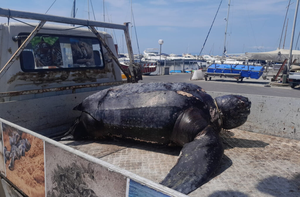 La tartaruga è stata trovata morta a due miglia di distanza dal faro del porto di Viareggio specie ‘Dermochelys coriacea’. Era stata vista nuotare da alcuni giorni in quelle acque.